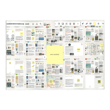 遊戲方式:創建線上共編平台——miro,架構出討論框架與分支,參與者能夠自行在miro上進行:拼裝、重組、擴延、配置資料和連結等動作,