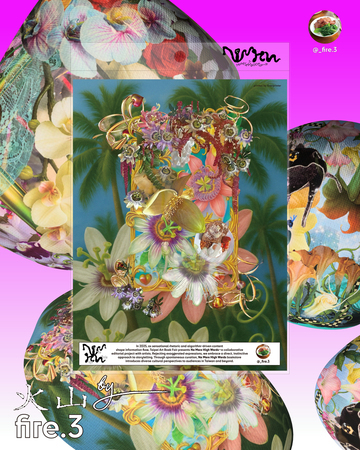 花和生活照片和ChatGPT生出來的內容,像撲克或塔羅牌背的一樣框體裝飾,有百香果、曼陀羅和蘭花三個主題。